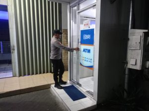 Petugas patroli melakukan pemantauan situasi di sekitar lokasi ATM serta memastikan kondisi dalam keadaan aman dan terkendali.