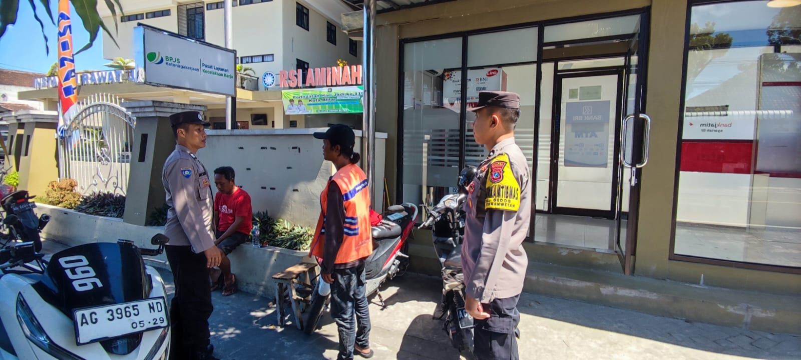Selain melakukan pengawasan terhadap obyek perbankan, petugas patroli juga menyempatkan diri memberikan imbauan kamtibmas kepada juru parkir yang berada di sekitar lokasi. Petugas mengingatkan agar dalam mengatur kendaraan yang parkir tetap memperhatikan ketertiban dan tidak mengganggu arus lalu lintas, sehingga aktivitas masyarakat yang melakukan transaksi perbankan dapat berjalan dengan lancar dan aman.