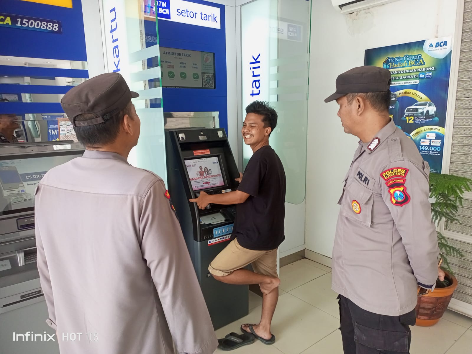 Petugas patroli Polsek Srengat Polres Blitar Kota kali ini melaksanakan patroli di sekitaran mesin Anjungan Tunai Mandiri (ATM). Hal ini dilakukan untuk mengantisipasi terjadinya tindak kejahatan.