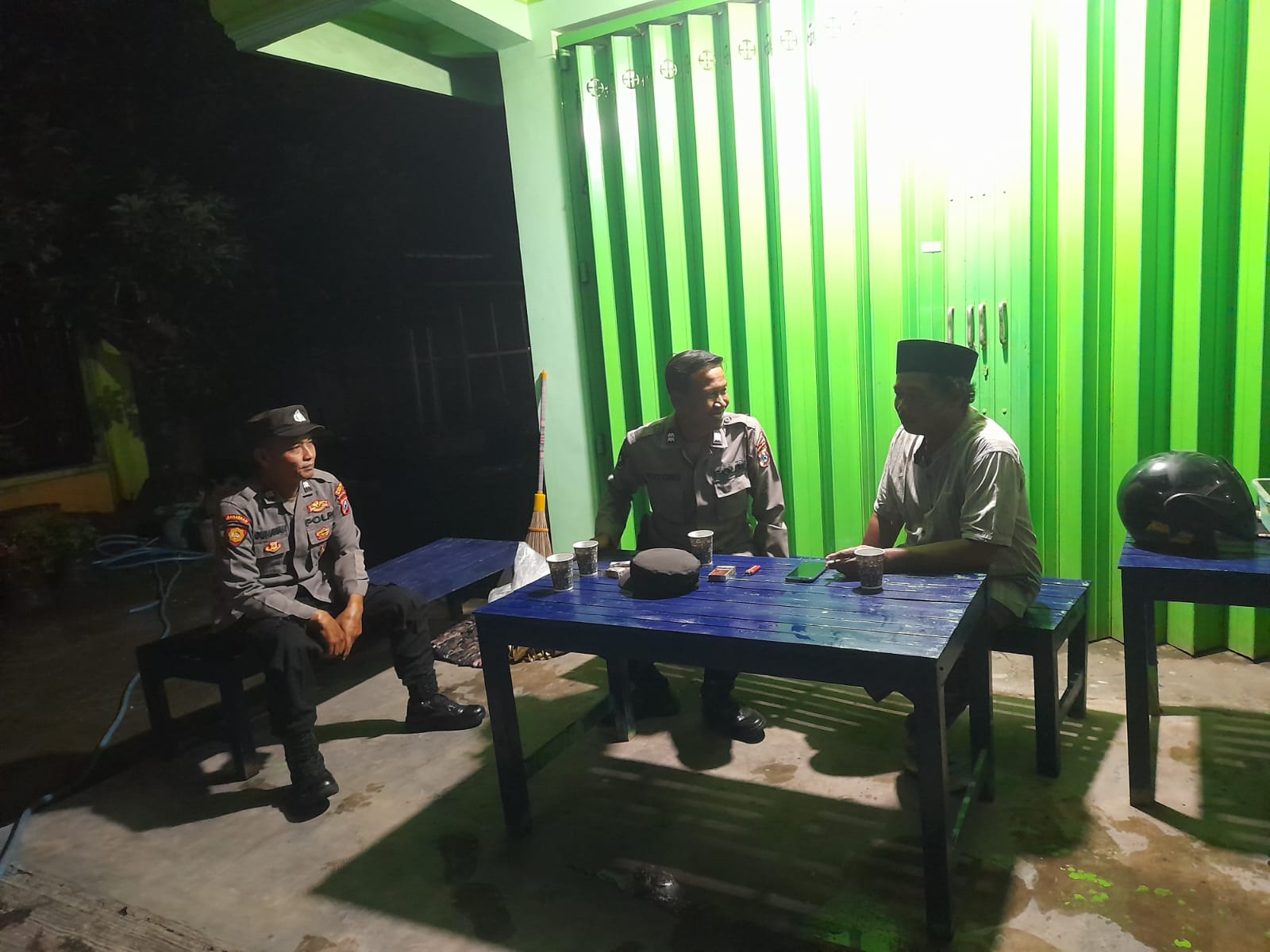 Anggota Polsek Srengat Berdialogis dengan Warga Desa Wonorejo di Poskamling