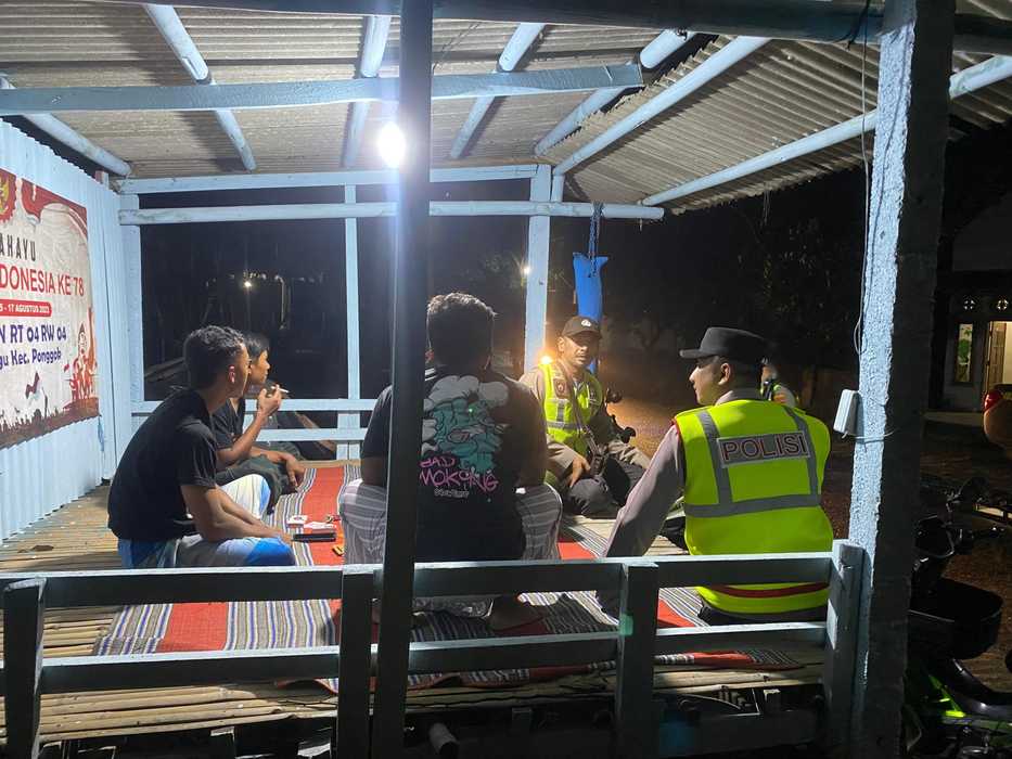 Dalam kegiatan tersebut, petugas menyampaikan imbauan Kamtibmas kepada warga yang sedang berjaga, sekaligus mengapresiasi peran aktif masyarakat dalam menjalankan ronda malam sebagai upaya menciptakan situasi yang aman dan kondusif.