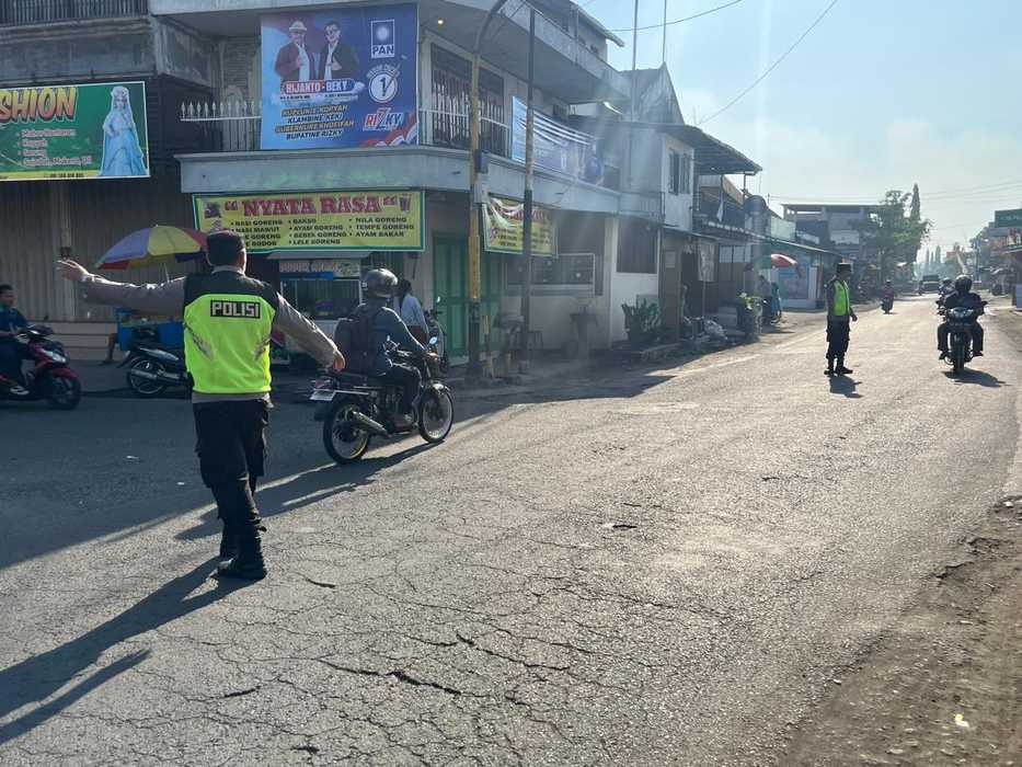Petugas Polsek Wonodadi terlihat sigap mengatur arus kendaraan dan membantu penyeberangan masyarakat, khususnya para pelajar dan pengguna jalan yang berangkat beraktivitas. Kehadiran anggota di lapangan bertujuan mencegah terjadinya kecelakaan serta menciptakan rasa aman bagi pengguna jalan.