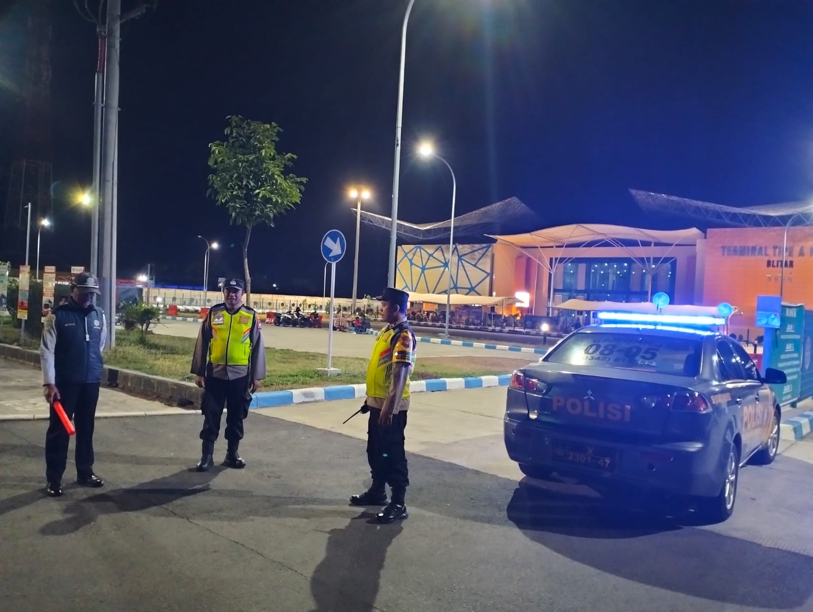 Dalam pelaksanaannya, anggota Polsek Sananwetan melakukan patroli secara menyeluruh di area terminal, mulai dari pintu masuk, area parkir, hingga lokasi tempat berkumpulnya penumpang dan pengemudi angkutan. Petugas juga melakukan pemantauan terhadap situasi sekitar serta memperhatikan aktivitas masyarakat guna memastikan kondisi tetap aman dan kondusif.