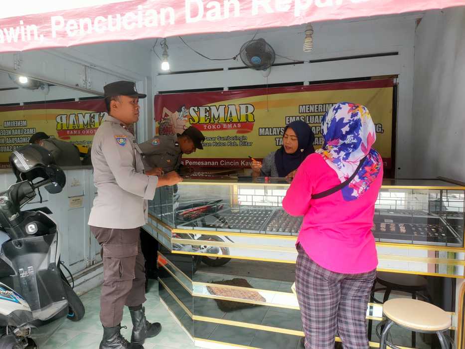Polsek Sanankulon – Personil Polsek Sanankulon melaksanakan patroli antisipasi tindak kejahatan 3-C dengan sasaran toko perhiasan emas yang ada di kawasan pasar tradisional Desa Sumberingin Kecamatan Sanankulon.