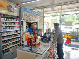 Polsek Sanankulon – Untuk menekan angka kejahatan yang terjadi di wilayah hukum Polsek Sanankulon, petugas Unit Sabhara melaksanakan kegiatan patroli dialogis kamtibmas yang dipimpin oleh KSPKT Aiptu Heru Setyo Budi beserta anggota dengan sasaran pusat pertokoan maupun obyek vital lainnya. Petugas juga berdialogis dengan karyawan minimarket sembari menyampaikan himbauan kamtibmas agar selalu waspada dan berhati hati saat melayani pembeli.