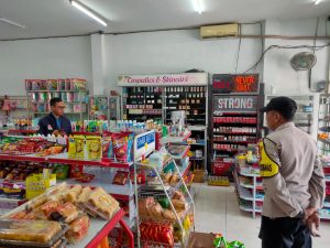 Polsek Sanankulon – Untuk menekan angka kejahatan yang terjadi di wilayah hukum Polsek Sanankulon, petugas Unit Sabhara melaksanakan kegiatan patroli dialogis kamtibmas yang dipimpin oleh KSPKT Aiptu Heru Setyo Budi beserta anggota dengan sasaran pusat pertokoan maupun obyek vital lainnya. Petugas juga berdialogis dengan karyawan minimarket sembari menyampaikan himbauan kamtibmas agar selalu waspada dan berhati hati saat melayani pembeli.