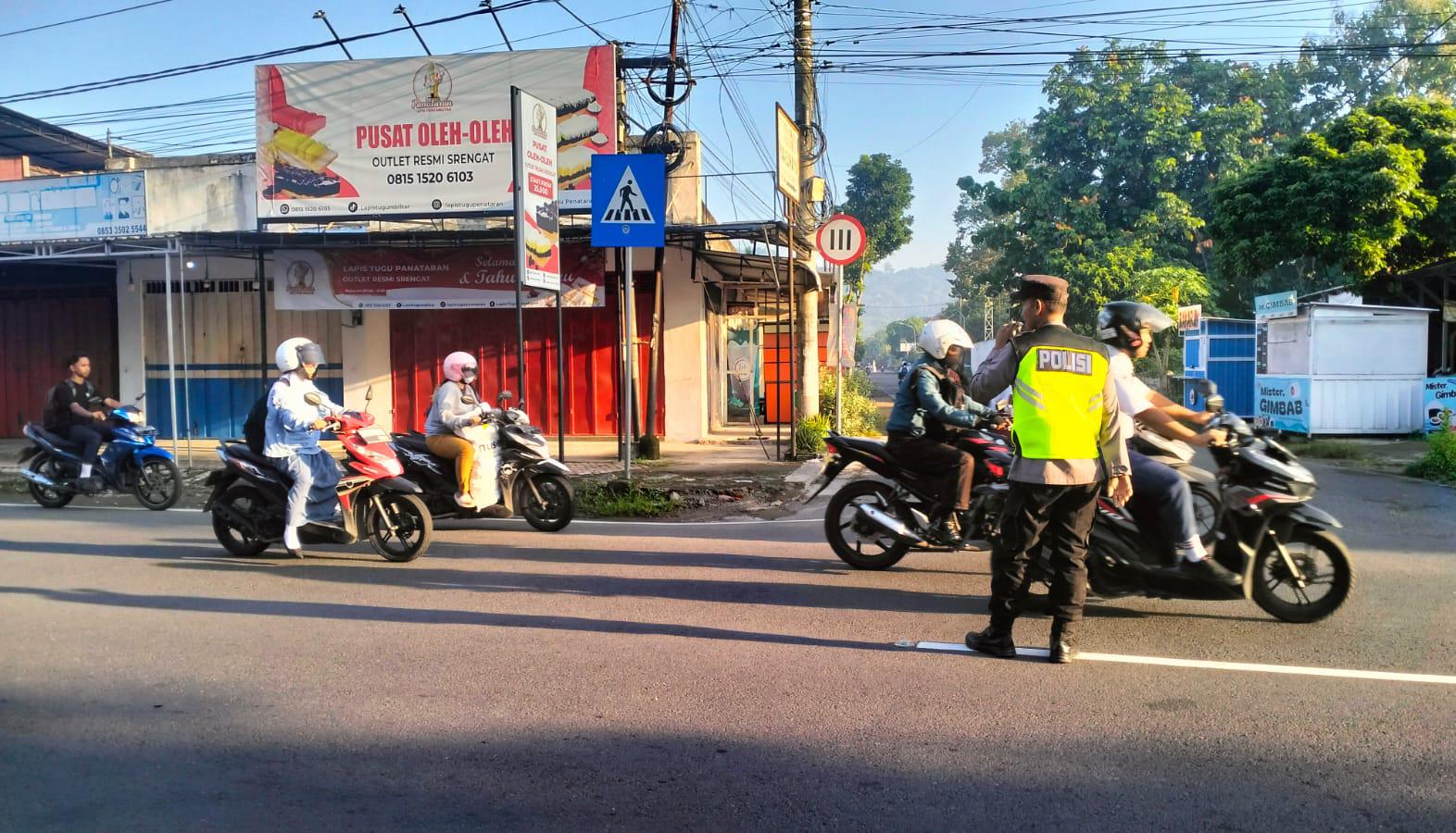 Polres Blitar Kota – Setiap pagi hari anggota Polsek Srengat Polres Blitar Kota selalu hadir di tengah – tengah masyarakat yang membutuhkan pelayanan masyarakat terutama pengguna jalan.Anggota Polsek Srengat melaksanakan kegiatan pengaturan arus lalu lintas baik di depan sekolah maupun di simpul – simpul jalan. Senin, 06/04/2026.