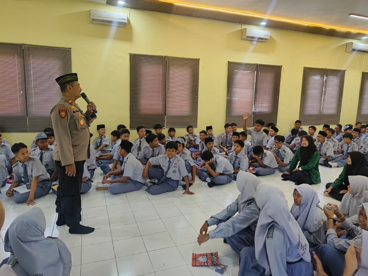 Wonodadi, Rabu 17 September 2025 – Kapolsek Wonodadi IPTU M. Ali Sukron, S.H. melaksanakan kegiatan sosialisasi anti kekerasan (bullying) dan anarkisme kepada para siswa-siswi di lingkungan MTs Negeri Kunir, Kecamatan Wonodadi, Kabupaten Blitar. Kegiatan dimulai pukul 08.30 WIB dan berlangsung dengan aman serta kondusif.