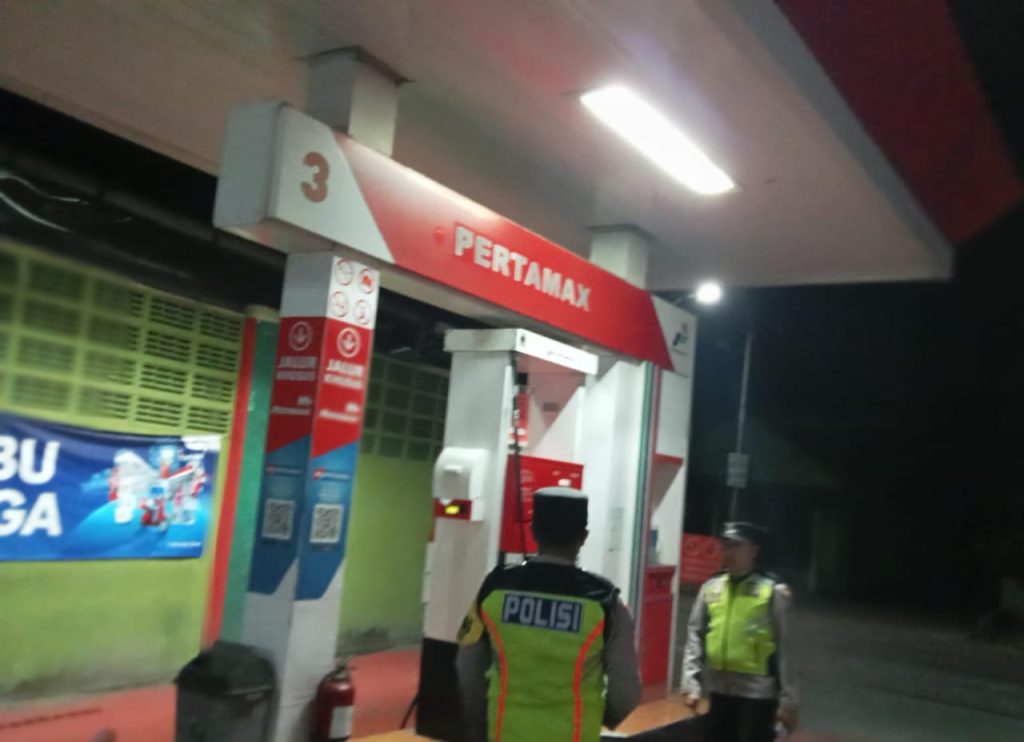 Giat Patroli Malam Objek Vital Antisipasi 3C, Polsek Wonodadi Sambangi SPBU Di Desa Pikatan