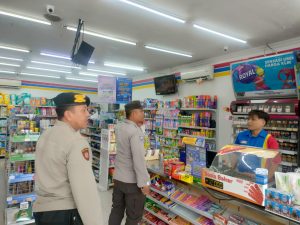 Polsek Sanankulon – Untuk menekan angka kejahatan yang terjadi di wilayah hukum Polsek Sanankulon, petugas Unit Sabhara melaksanakan kegiatan patroli dialogis kamtibmas yang dipimpin oleh KSPKT Aiptu Heru Setyo Budi beserta anggota dengan sasaran pusat pertokoan maupun obyek vital lainnya. Petugas juga berdialogis dengan karyawan minimarket sembari menyampaikan himbauan kamtibmas agar selalu waspada dan berhati hati saat melayani pembeli.