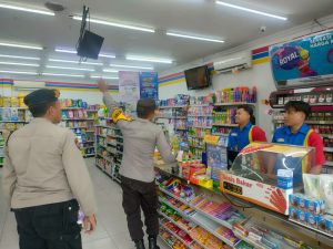 Polsek Sanankulon – Untuk menekan angka kejahatan yang terjadi di wilayah hukum Polsek Sanankulon, petugas Unit Sabhara melaksanakan kegiatan patroli dialogis kamtibmas yang dipimpin oleh KSPKT Aiptu Heru Setyo Budi beserta anggota dengan sasaran pusat pertokoan maupun obyek vital lainnya. Petugas juga berdialogis dengan karyawan minimarket sembari menyampaikan himbauan kamtibmas agar selalu waspada dan berhati hati saat melayani pembeli.