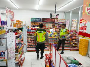 Polsek Sanankulon – Untuk menekan angka kejahatan yang terjadi di wilayah hukum Polsek Sanankulon, petugas Unit Sabhara melaksanakan kegiatan patroli dialogis kamtibmas yang dipimpin oleh KSPKT Aiptu Heru Setyo Budi beserta anggota dengan sasaran pusat pertokoan maupun obyek vital lainnya. Petugas juga berdialogis dengan karyawan minimarket sembari menyampaikan himbauan kamtibmas agar selalu waspada dan berhati hati saat melayani pembeli.