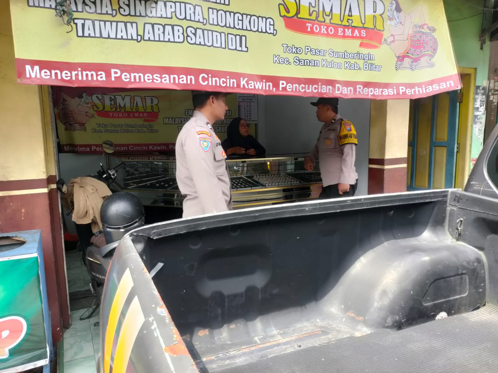Polsek Sanankulon – Personil Polsek Sanankulon melaksanakan patroli antisipasi tindak kejahatan 3-C  dengan sasaran toko perhiasan emas yang ada di kawasan pasar tradisional Desa Sumberingin Kecamatan Sanankulon.