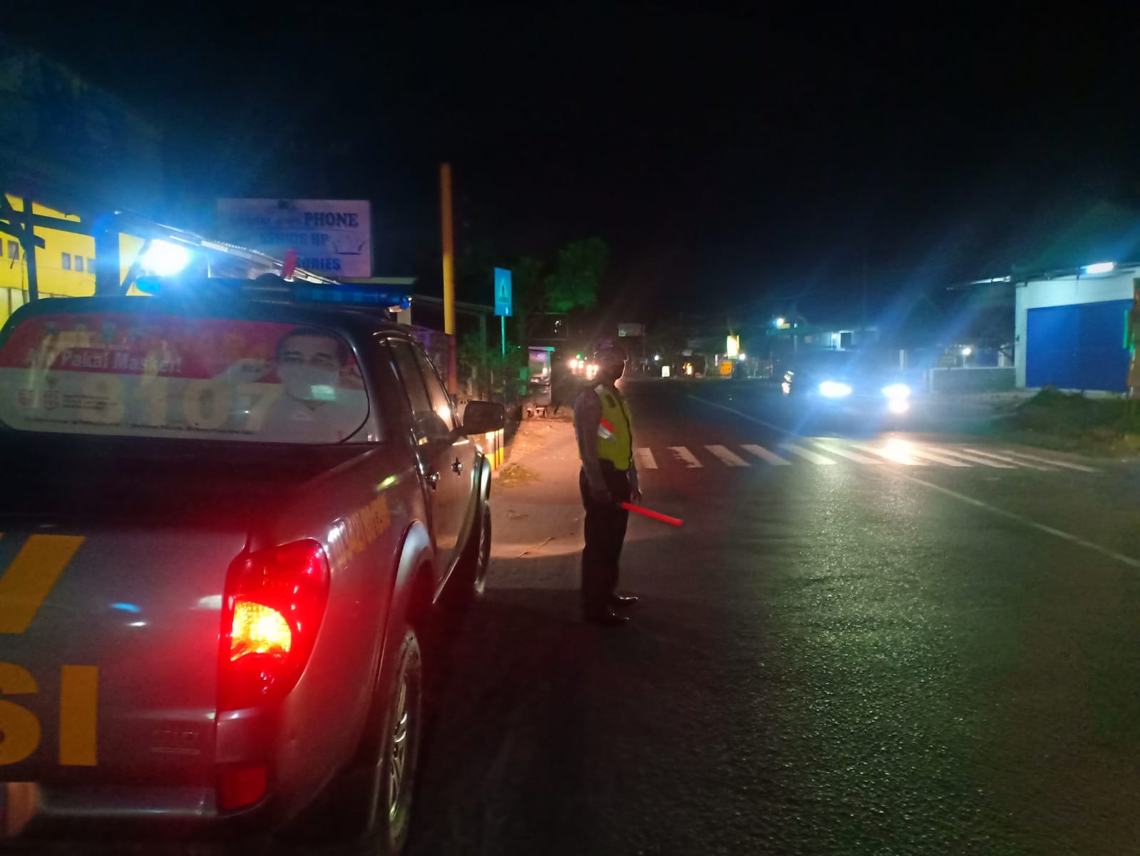 Kegiatan Anggota Polsek Sanankulon Patroli Malam Hari Di Pemukiman Warga Menjaga Agar Situasi Tetap Aman.