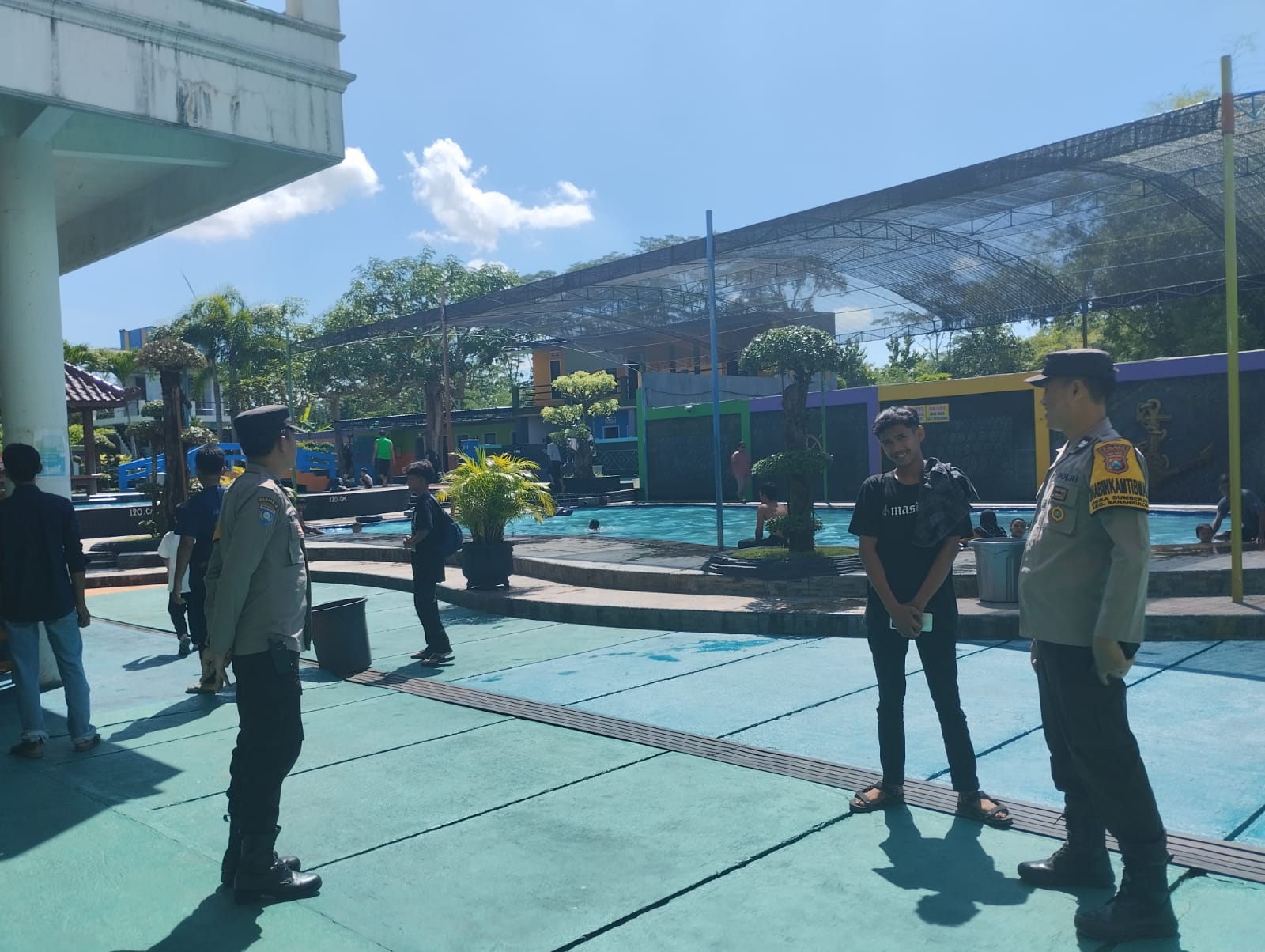 Polsek Sanankulon – Memasuki ahir pekan dan libur sekolah, tentu masyarakat memanfaatkannya untuk berwisata bersama anggota keluarga dengan bepergian keluar rumah. Salahsatu tujuan wisata atau rekreasi keluarga di wilayah hukum Polsek Sanankulon adalah kolam renang yang berlokasi di Desa Purworejo. Anggota unit Sabhara yang dipimpin oleh Aiptu Rudy Sujarwo beserta anggota melaksanakan patroli dialogis sebagai upaya untuk cegah atau antisipasi terhadap segala bentuk potensi gangguan kamtibmas maupun kriminalitas.