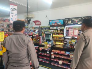 Polsek Sanankulon – Untuk menekan angka kejahatan yang terjadi di wilayah hukum Polsek Sanankulon, petugas Unit Sabhara melaksanakan kegiatan patroli dialogis kamtibmas yang dipimpin oleh KSPKT Aiptu Heru Setyo Budi beserta anggota dengan sasaran pusat pertokoan maupun obyek vital lainnya. Petugas juga berdialogis dengan karyawan minimarket sembari menyampaikan himbauan kamtibmas agar selalu waspada dan berhati hati saat melayani pembeli.