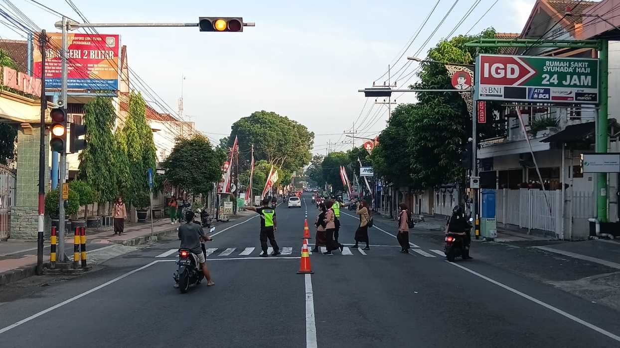 Kapolsek Sukorejo Polres Blitar Kota AKP Santoso, SH menyampaikan Laksanakan Pengamanan Sesuai plotinganya lakukan Pengaturan Supaya Arus Lalu Lintas tetap Berjalan lancar dan Pastikan tidak ada hambatan.