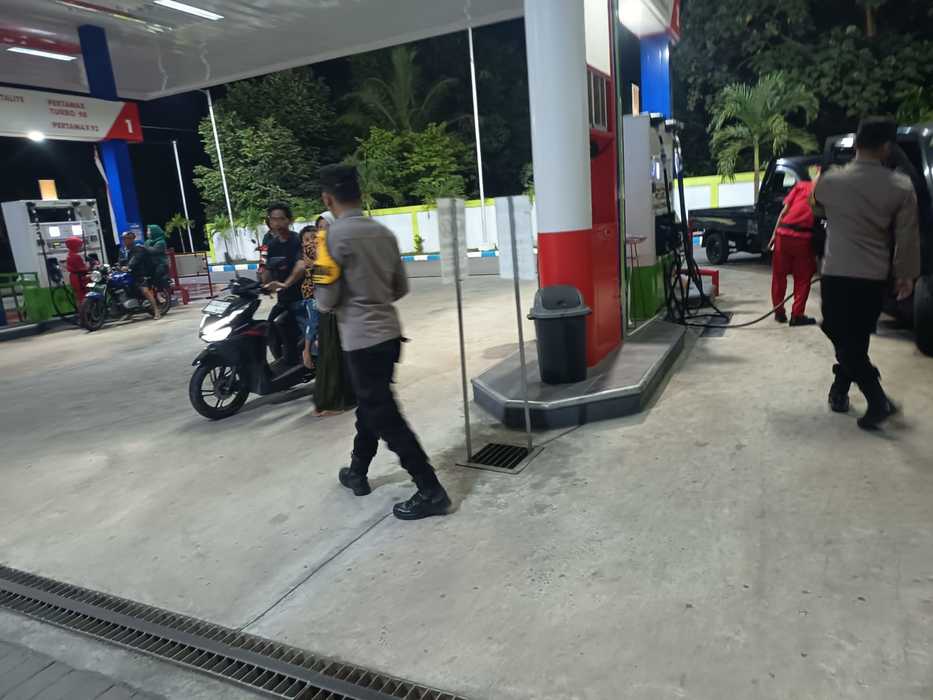 Anggota Polsek Nglegok berpatroli di SPBU berikan himbauan Kamtibmas kepada warga cegah tindak kriminalitas