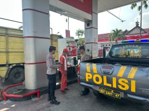 Patroli dialogis anggota Polsek Nglegok di SPBU berikan himbauan Kamtibmas kepada karyawan antisipasi aksi kriminalitas