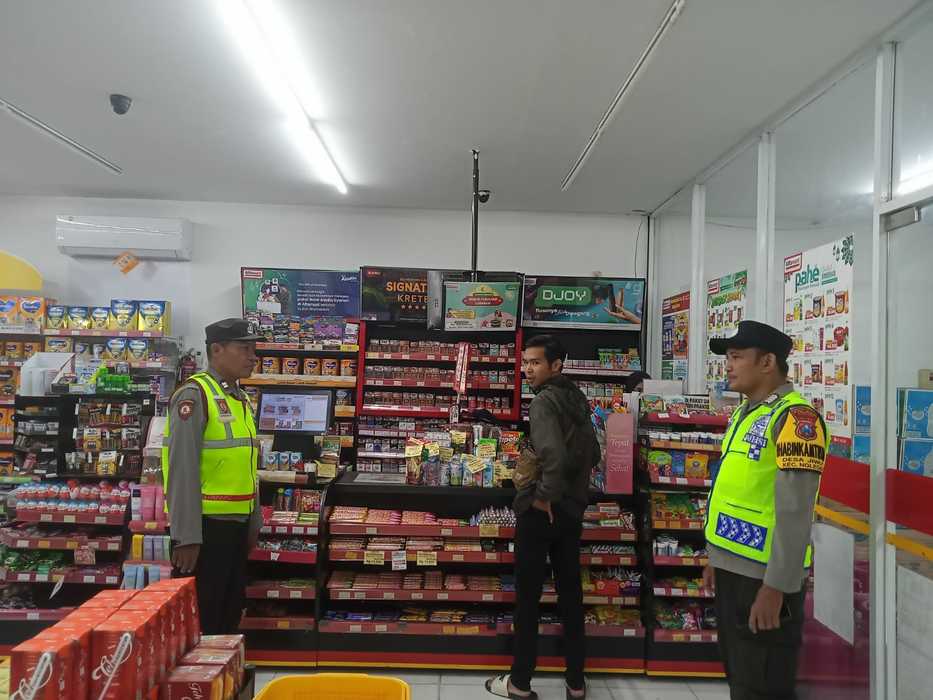 Anggota Polsek Nglegok melaksanakan patroli dan mendatangi salah satu minimarket yang lumayan ramai pembeli. (14 Oktober 2025)