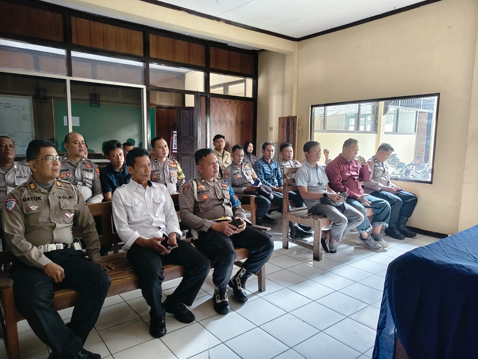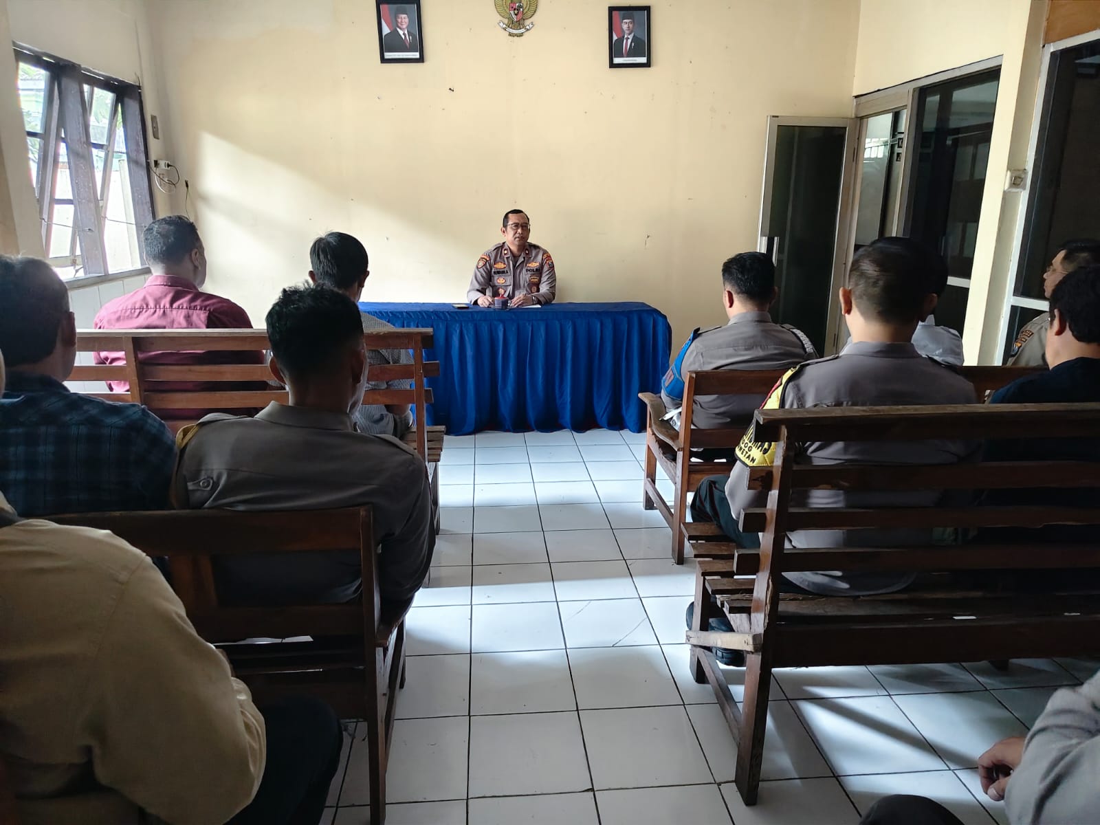 Kapolsek Sananwetan, Kompol Huwahila Wahyun Yuha, S.H., M.H., memimpin langsung kegiatan Jam Pimpinan yang dirangkai dengan sosialisasi serta pemberian himbauan terkait Commander Wish Kapolres Blitar Kota kepada seluruh anggota Polsek Sananwetan. Kegiatan tersebut dilaksanakan di ruang aula Polsek Sananwetan pada Rabu, 21 Januari 2026, mulai pukul 08.00 WIB hingga 08.45 WIB, dan diikuti oleh seluruh personel Polsek Sananwetan.