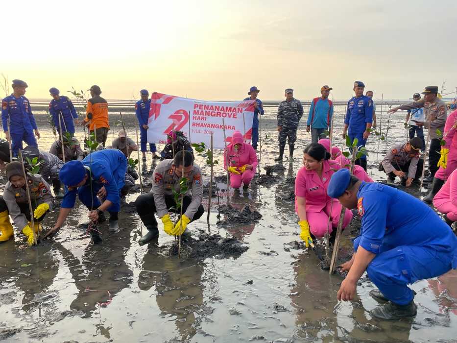 Penanaman mangrove dilakukan sebagai langkah nyata Polri Untuk Masyarakat dalam mendukung kelestarian lingkungan dan pencegahan abrasi pantai.