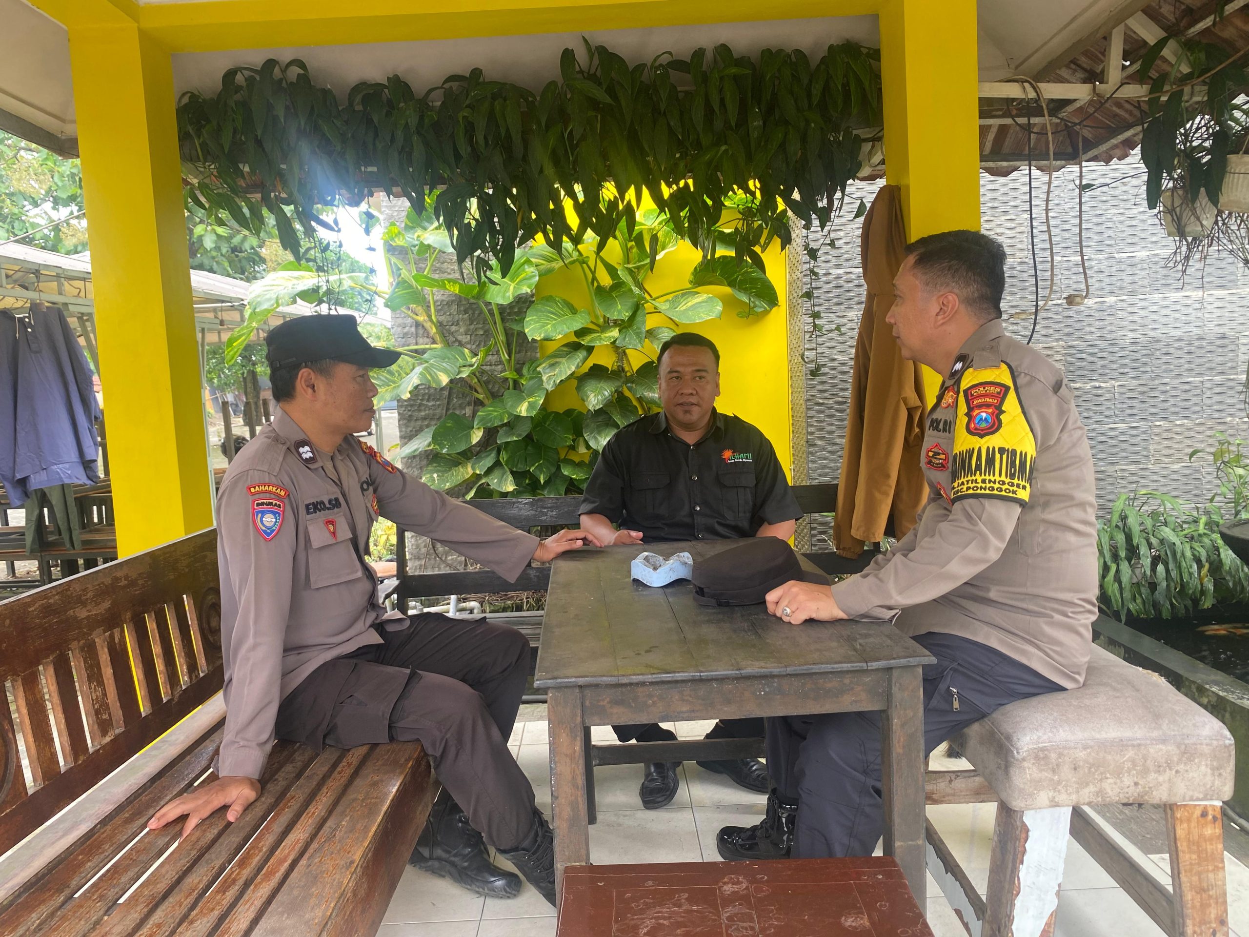 Polsek Ponggok – Dalam Rangka Monitoring wilayah Personil Polsek POnggok Melaksanakan Patroli Dialogis Menyapa Satpam Hotel dan sampaikan himbauan kamtibmas yang berada di Desa Jatilengger Kec. Ponggok,Senin.(22/12/2025)