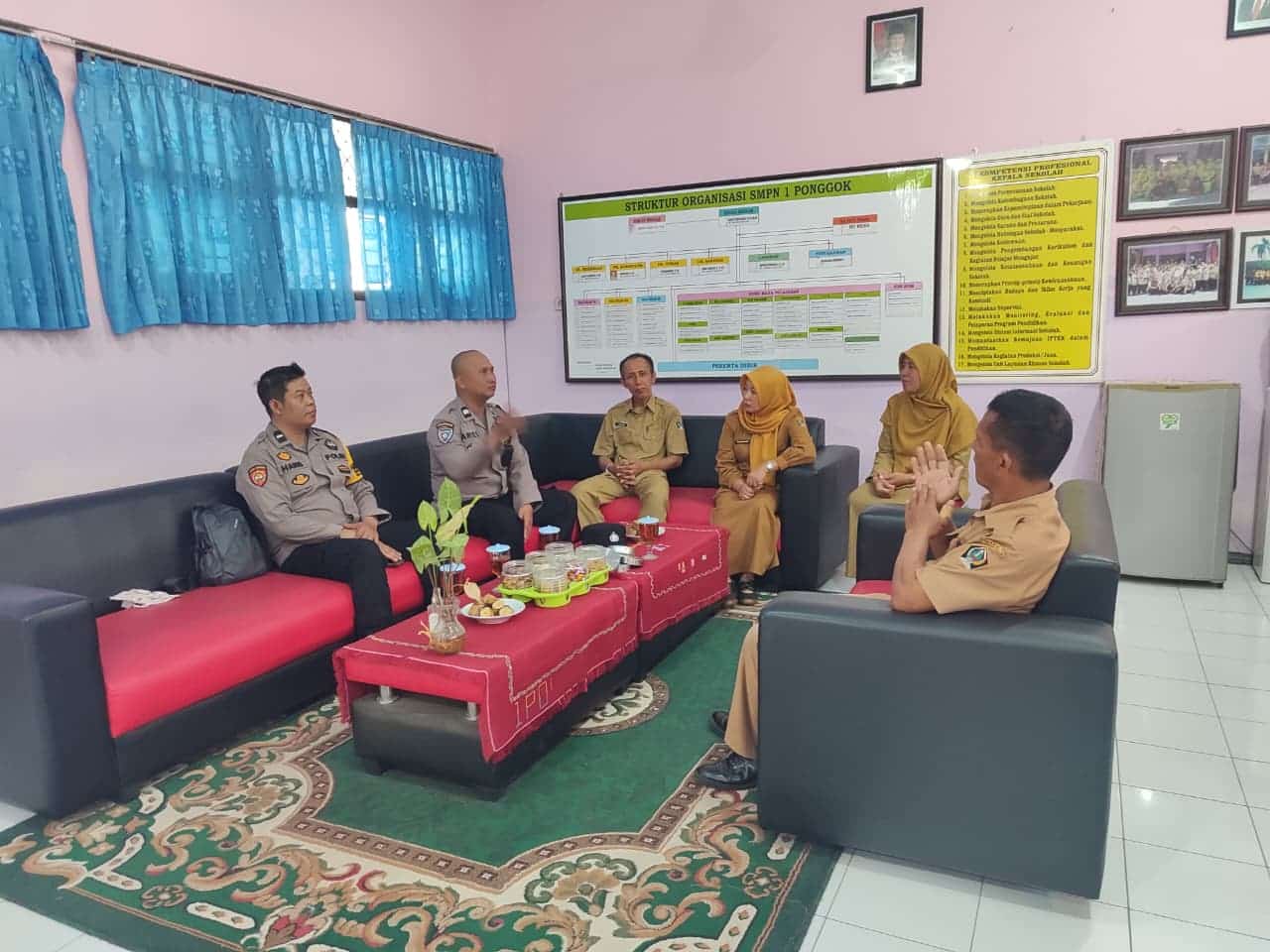 Pongggok– Dalam upaya mempererat komunikasi dengan masyarakat, Kanit Binmas Polsek Ponggok Aiptu  Aris Dwi Prasetyo, S.H. bersama Bhabinkamtibmas Desa Ponggok, Aipda Luluk Hari Setyawan, S.H. melaksanakan kegiatan “Jumat Curhat” bersama para guru SMP N 1 Ponggok. Kegiatan ini berlangsung di SMP N 1 Ponggok, pada Jumat (14/11/2025).