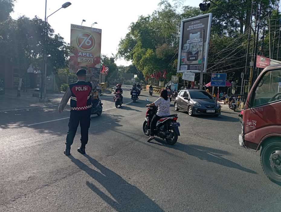 Sama seperti yang dilakukan Kanit Samapta Polsek Ponggok Aiptu Satriyo Rananggono, S.H, melaksanakan gerakan pengaturan (gatur) lantas guna menciptakan ketertiban dan keselamatan berkendara.