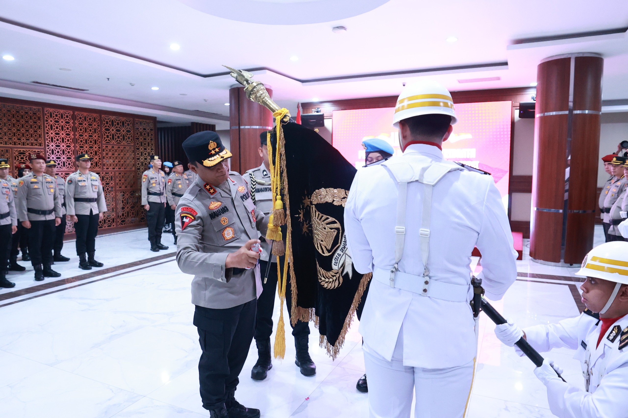 Kabidhumas Polda Jatim,Kombes Pol Jules Abraham Abast mengatakan, kegiatan upacara pemuliaan nilai – nilai luhur Tribrata Pataka Polda Jatim “Tan Hana Dharma Mangrwa” ini merupakan tradisi tahunan dalam rangka memperingati Hari Bhayangkara.