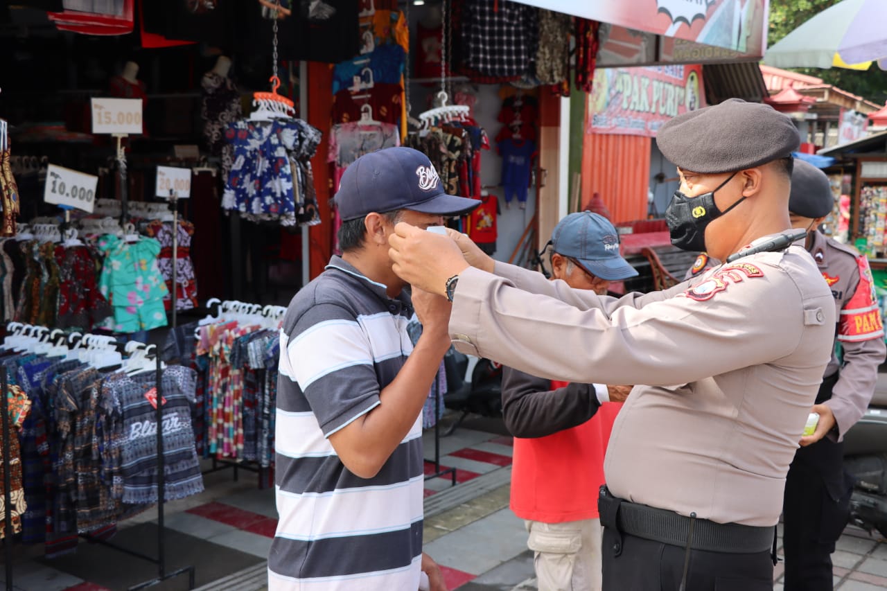 AKBP Argo juga memberikan nasehat tentang pentingnya memakai masker untuk mencegah penyebaran Covid-19. Kegiatan kunjungan ke tempat keramaian ini adalah bagian dari upaya menekan penyebaran Covid-19.