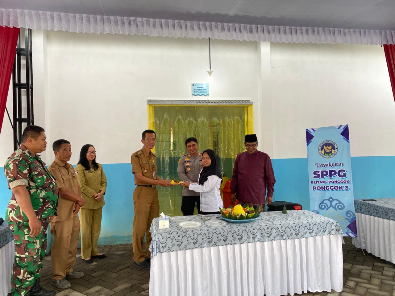 Acara Grand Opening diakhiri dengan pemotongan Tumpeng oleh Camat Ponggok dan peninjauan langsung (tour) ke area dapur SPPG.