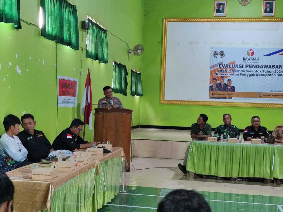 Dalam rapat evaluasi ini, berbagai aspek pelaksanaan pengawasan pemilu dibahas secara rinci untuk memastikan proses demokrasi berjalan sesuai dengan ketentuan. Kapolsek Ponggok menyampaikan pentingnya kerja sama yang solid antara berbagai pihak untuk menjaga kelancaran dan keamanan setiap tahapan pemilu di wilayah Ponggok.