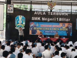 Blitar – Dalam rangka menanamkan semangat berprestasi serta menumbuhkan rasa cinta terhadap tanah air di kalangan pelajar, Kapolsek Sananwetan AKP Huwahila Wahyun Yuha, S.H., M.H. hadir dalam kegiatan “Motivasi Sukses Berprestasi dan Cinta Negeri” yang diselenggarakan di aula terbuka SMK Negeri 1 Blitar, Jalan Kenari, Kelurahan Plosokerep, Kecamatan Sananwetan, Kota Blitar, pada Selasa (14/10/2025) pukul 08.00 WIB.