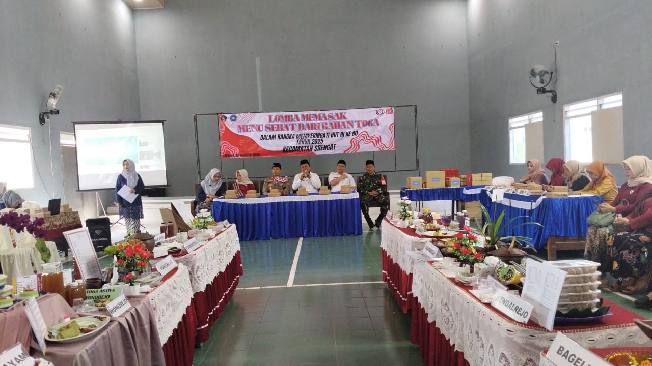 Srengat – Polsek Srengat menghadiri kegiatan Giat Lomba Memasak menu Sehat dari Bahan Toga dalam Rangjka Peringatan HUT RI ke 80 di Gedung Serbaguna Kec. Srengat pada Rabu, 20/08/2025.