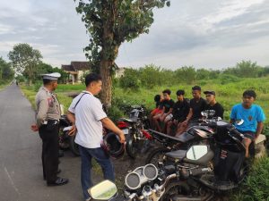 Patroli Polsek Nglegok di jalan desa antisipasi ronda sahur yang menggunakan sound system besar dan terjadinya penyalaan petasan saat sahur
