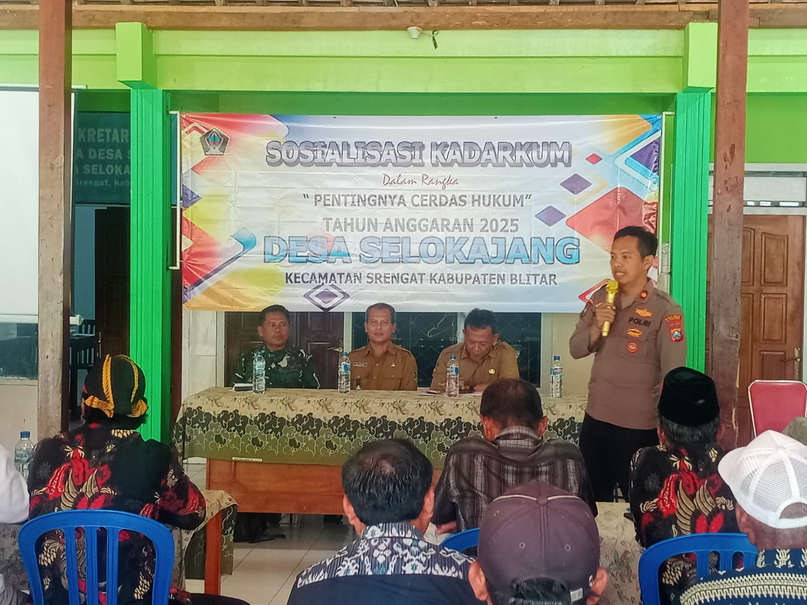 Srengat – Kapolsek Srengat Menjadi Narasumber Kadarkum yang Dilaksanakan di Balai Desa Selokajang pada Selasa, 25/11/2025.