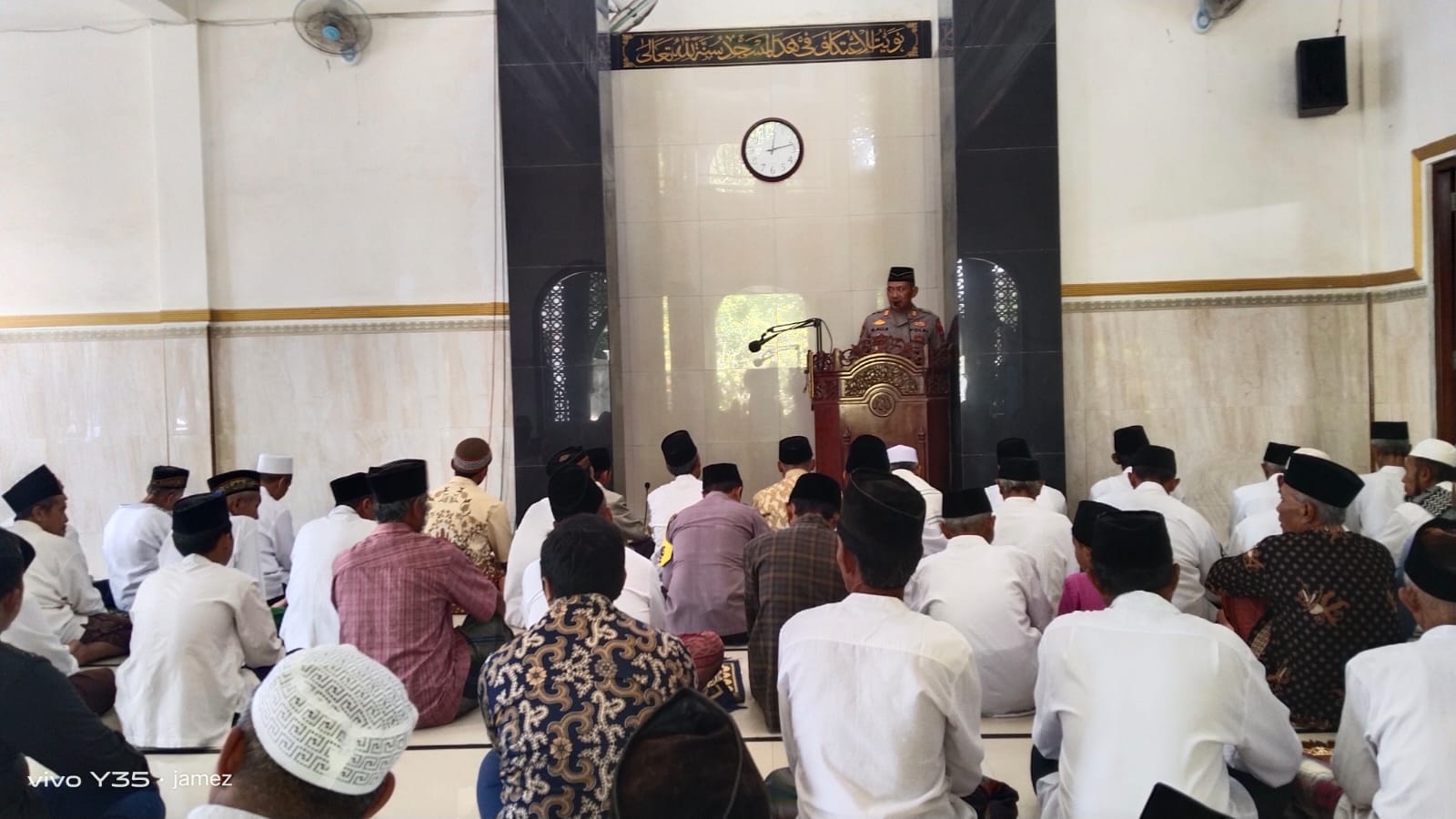 Kapolsek Wonodadi melaksanakan sosialisasi Surat Edaran Bupati Blitar kepada para jamaah Sholat Jum’at dengan menyampaikan imbauan dan ketentuan yang perlu dipedomani selama Bulan Ramadhan, guna menjaga ketertiban umum, toleransi antarumat beragama, serta kenyamanan dalam pelaksanaan ibadah.