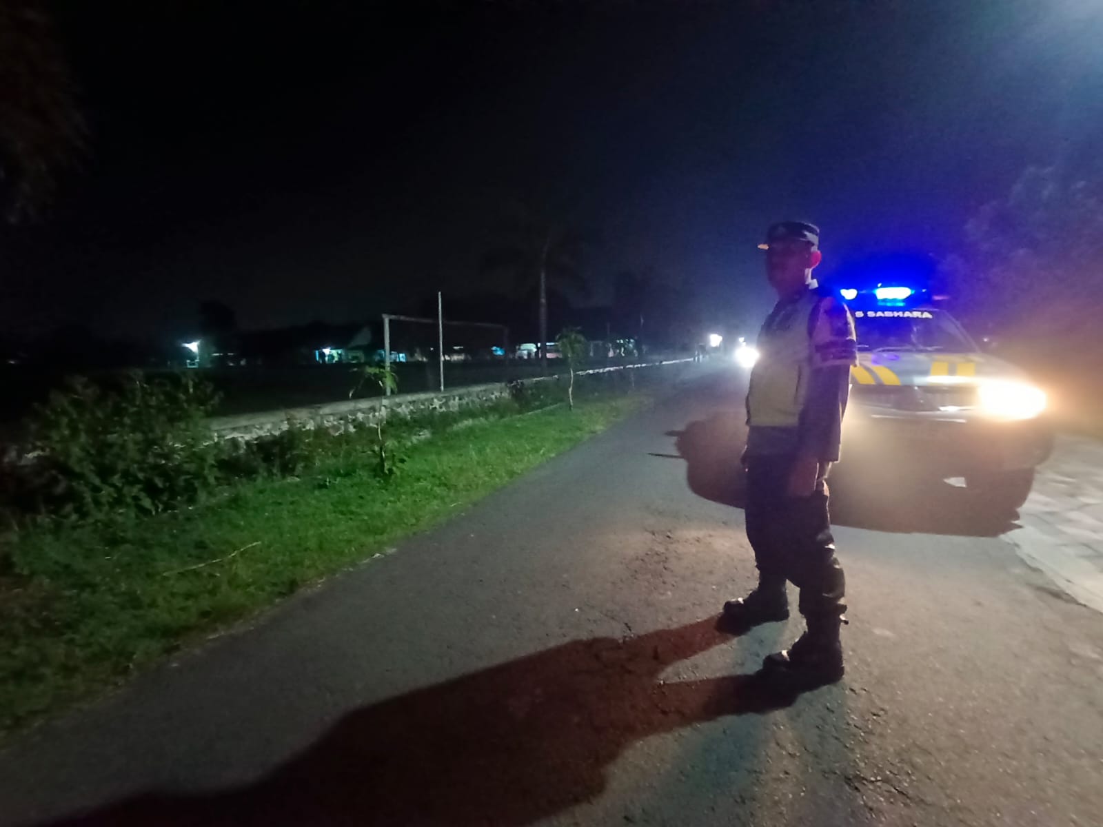 Kegiatan Anggota Polsek Sanankulon Patroli Malam Hari Pemukiman Warga Menjaga Agar Situasi Aman.