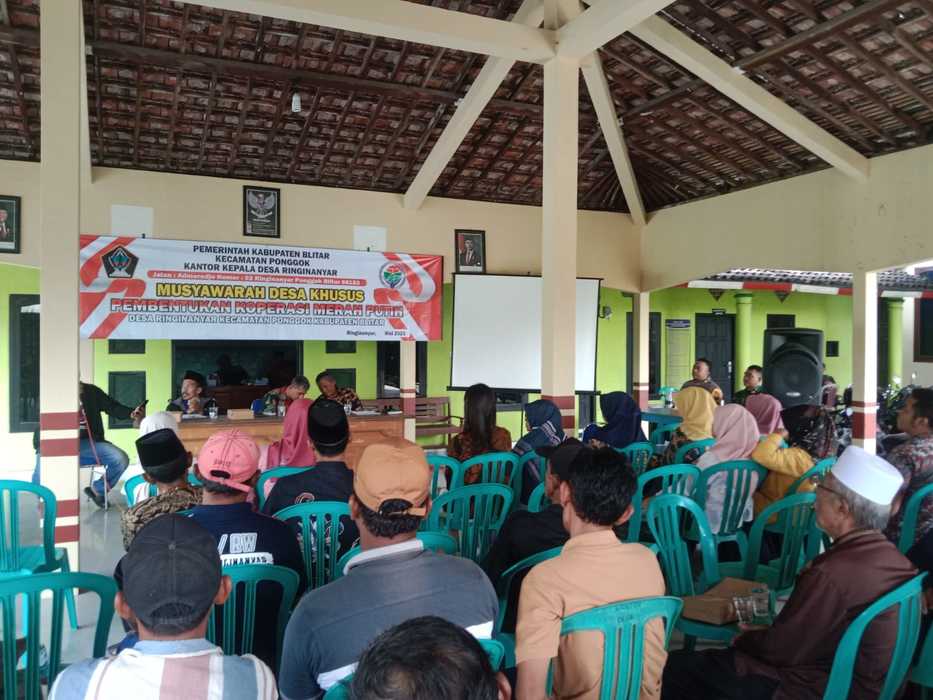 Dalam rangka mendukung program ketahanan ekonomi desa dan penguatan sektor usaha masyarakat, Bhabinkamtibmas Polsek Ponggok Aipda Arief menghadiri kegiatan Musyawarah Desa Khusus (Musdesus) terkait pembentukan Koperasi Desa Merah Putih, bertempat di Balai Desa Ringinanyar, Kamis (29/05/2025)
