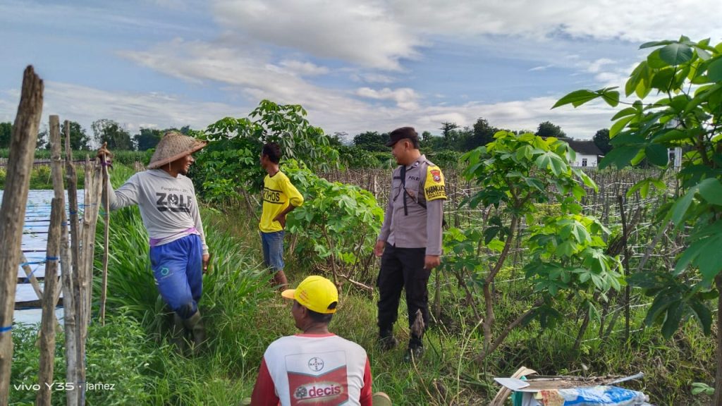 Dalam kesempatan tersebut, Bhabinkamtibmas berdialog langsung dengan para petani terkait situasi keamanan di lingkungan persawahan, sekaligus memberikan himbauan kamtibmas agar masyarakat senantiasa menjaga hasil pertanian dari potensi tindak kriminalitas seperti pencurian hasil panen maupun peralatan pertanian.