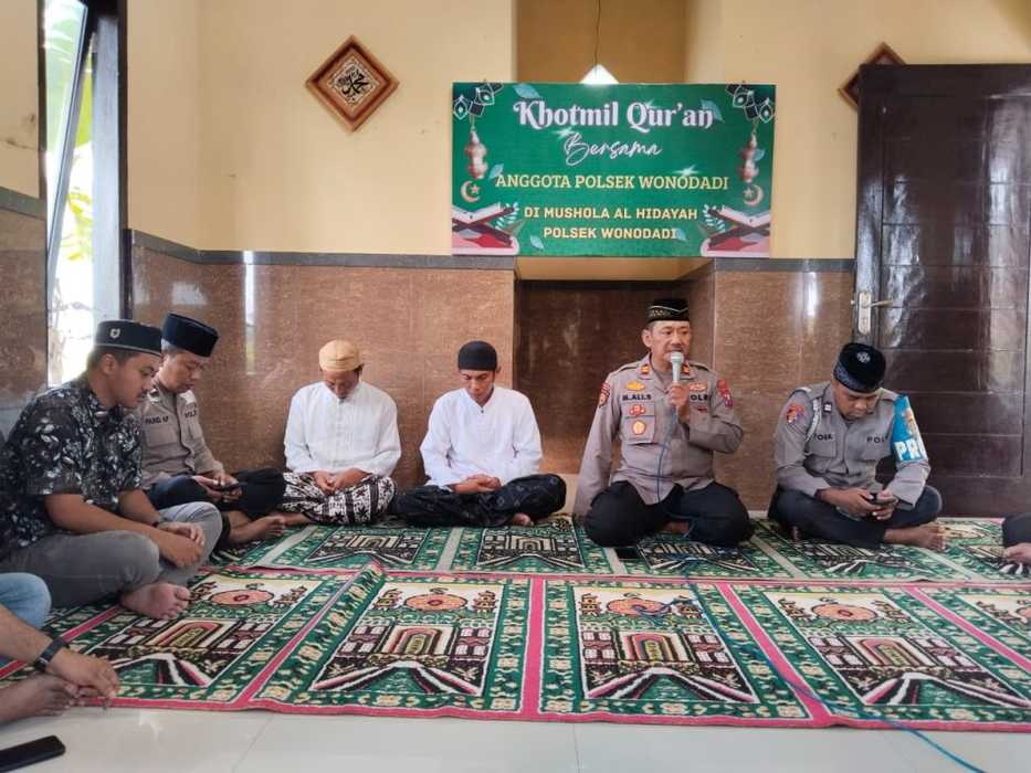 Wonodadi, 23 Oktober 2025 — Dalam rangka meningkatkan keimanan dan ketakwaan kepada Allah SWT, Polsek Wonodadi Polres Blitar Kota melaksanakan kegiatan Khotmil Qur’an yang bertempat di Mushola Polsek Wonodadi. Kegiatan dimulai pada pukul 08.30 WIB dan diikuti oleh seluruh anggota Polsek Wonodadi bersama para khafidz dari wilayah Kecamatan Wonodadi.