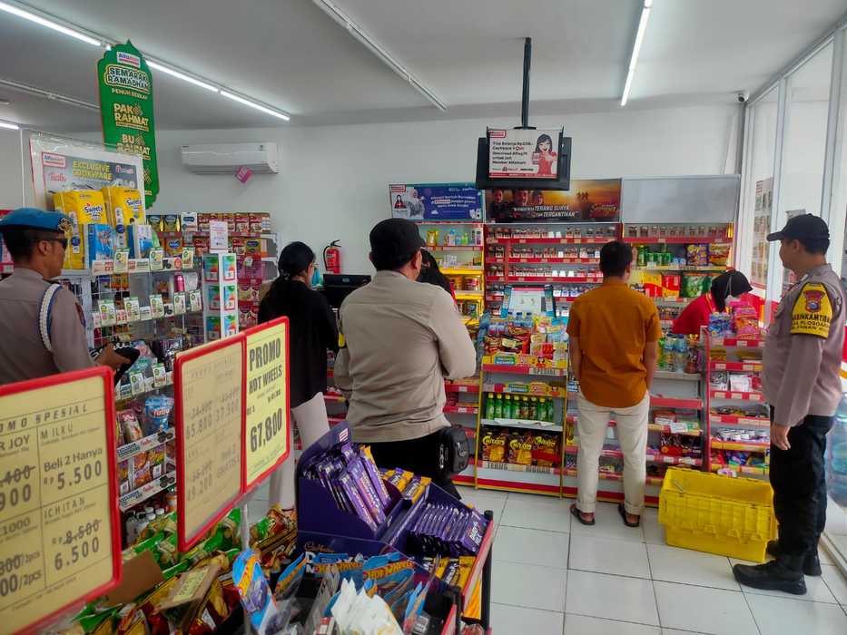 Polsek Sanankulon – Untuk menekan angka kejahatan yang terjadi di wilayah hukum Polsek Sanankulon, petugas Unit Sabhara melaksanakan kegiatan patroli dialogis kamtibmas yang dipimpin oleh KSPKT Aiptu Heru Setyo Budi beserta anggota dengan sasaran pusat pertokoan maupun obyek vital lainnya. Petugas juga berdialogis dengan karyawan minimarket sembari menyampaikan himbauan kamtibmas agar selalu waspada dan berhati hati saat melayani pembeli.