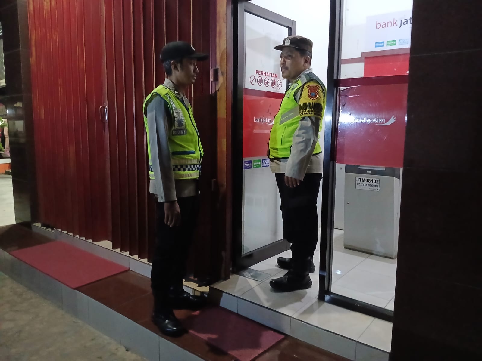 Wonodadi, 19 April 2026 — anggota Polsek Wonodadi melaksanakan kegiatan patroli objek vital (obvit) di ATM Bank Jatim Desa Wonodadi, Kecamatan Wonodadi, Kabupaten Blitar.