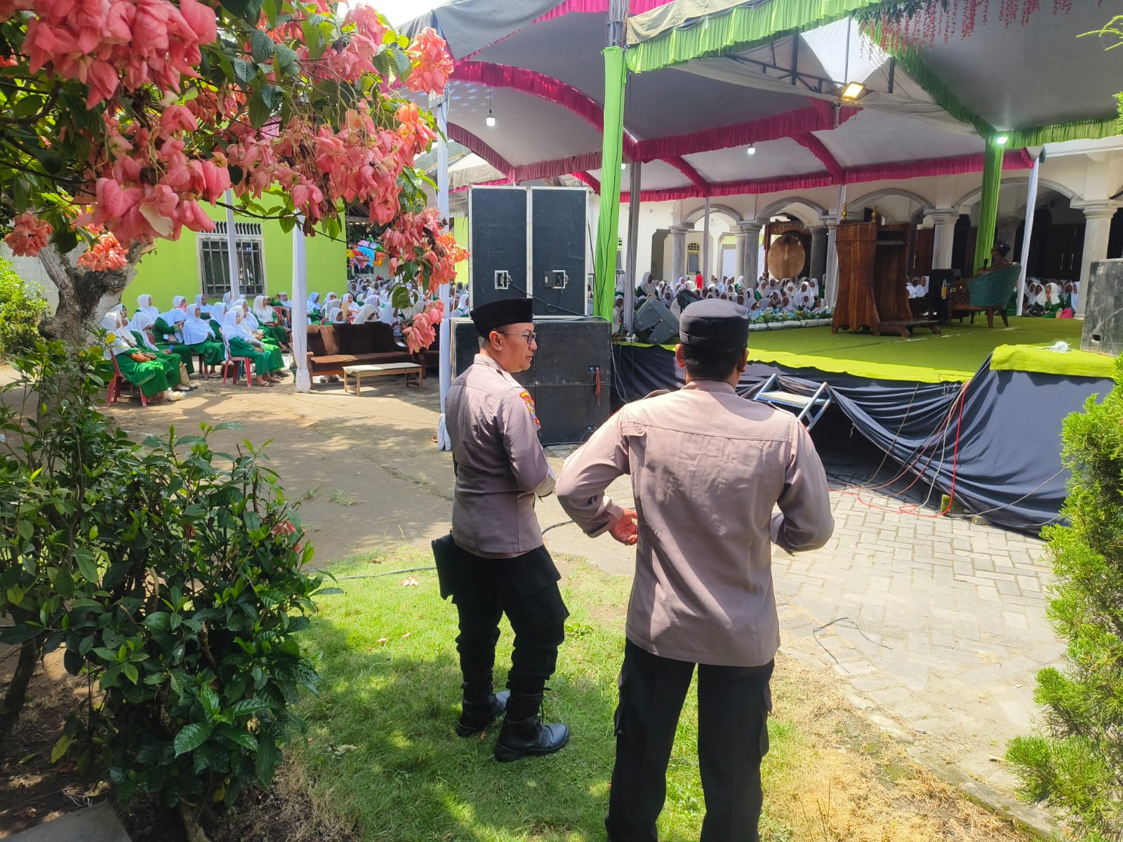 Selain melakukan pengamanan di sekitar lokasi kegiatan, personel Polsek Wonodadi juga melaksanakan patroli dialogis dan pengaturan arus lalu lintas guna mencegah kemacetan serta memastikan kelancaran aktivitas masyarakat di sekitar masjid.