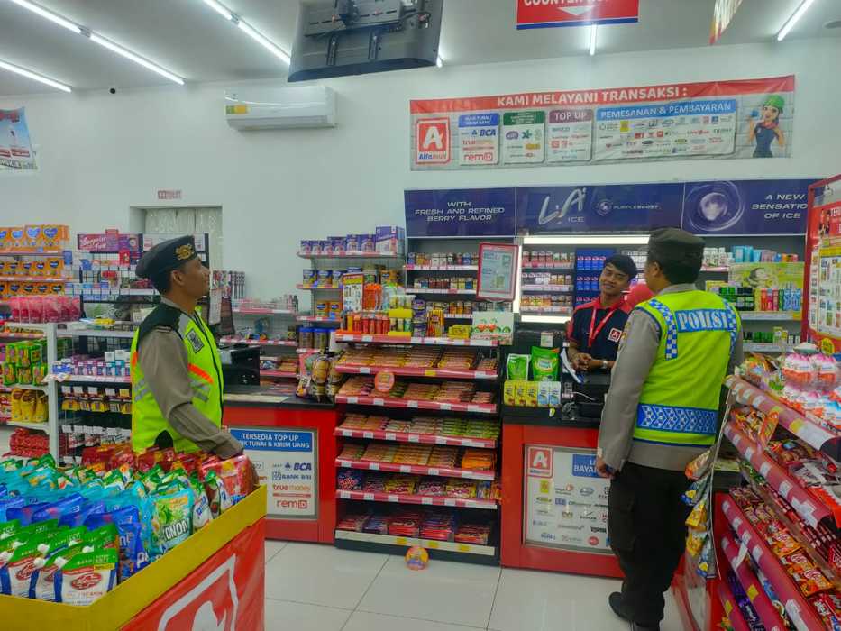 Polsek Sanankulon – Untuk menekan angka kejahatan yang terjadi di wilayah hukum Polsek Sanankulon, petugas Unit Sabhara melaksanakan kegiatan patroli dialogis kamtibmas yang dipimpin oleh KSPKT Aiptu Heru Setyo Budi beserta anggota dengan sasaran pusat pertokoan maupun obyek vital lainnya. Petugas juga berdialogis dengan karyawan minimarket sembari menyampaikan himbauan kamtibmas agar selalu waspada dan berhati hati saat melayani pembeli.