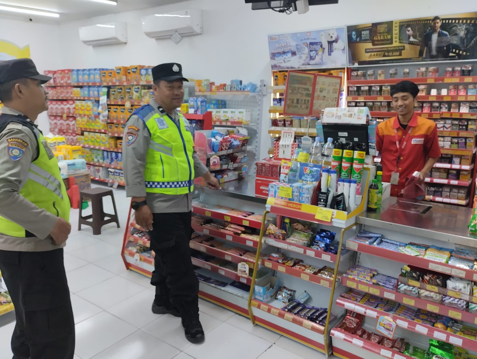 Polsek Sanankulon – Untuk menekan angka kejahatan yang terjadi di wilayah hukum Polsek Sanankulon, petugas Unit Sabhara melaksanakan kegiatan patroli dialogis kamtibmas yang dipimpin oleh KSPKT Aiptu Heru Setyo Budi beserta anggota dengan sasaran pusat pertokoan maupun obyek vital lainnya. Petugas juga berdialogis dengan karyawan minimarket sembari menyampaikan himbauan kamtibmas agar selalu waspada dan berhati hati saat melayani pembeli.