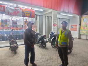 Polsek Sanankulon – Untuk menekan angka kejahatan yang terjadi di wilayah hukum Polsek Sanankulon, petugas Unit Sabhara melaksanakan kegiatan patroli dialogis kamtibmas yang dipimpin oleh KSPKT Aiptu Heru Setyo Budi beserta anggota dengan sasaran pusat pertokoan maupun obyek vital lainnya. Petugas juga berdialogis dengan karyawan minimarket sembari menyampaikan himbauan kamtibmas agar selalu waspada dan berhati hati saat melayani pembeli.