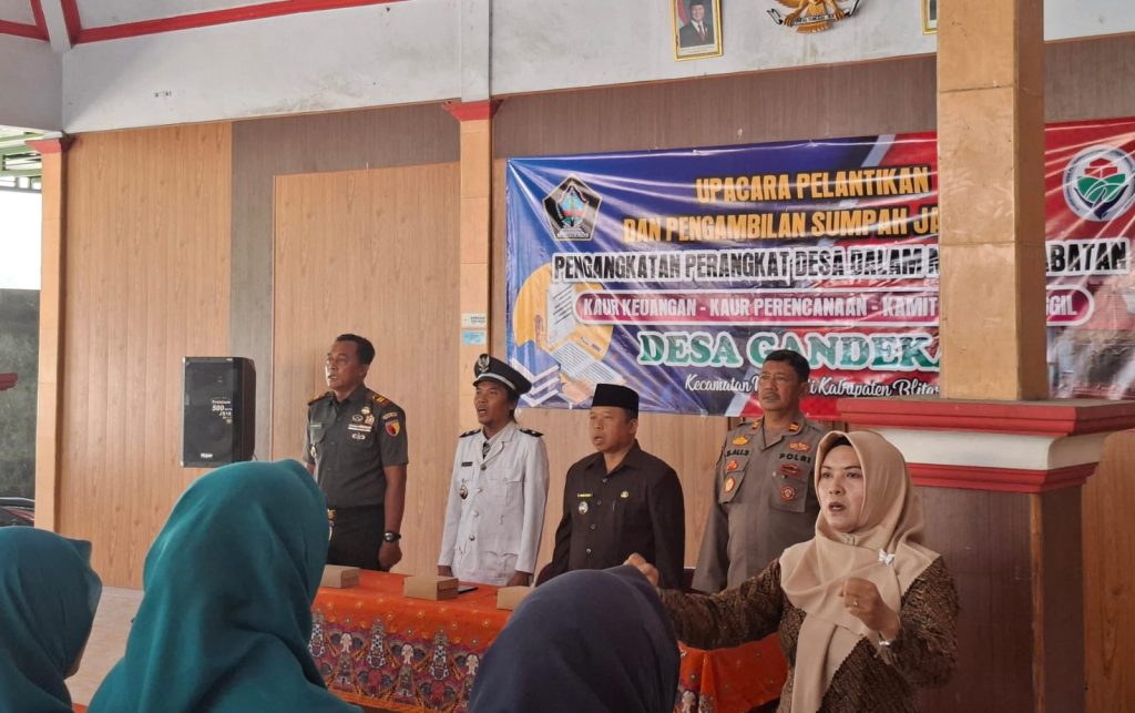 Wonodadi – Pada hari Selasa, 23 September 2025 pukul 09.00 WIB bertempat di Halaman Kantor Desa Gandekan telah dilaksanakan kegiatan Upacara Pelantikan dan Pengambilan Sumpah Jabatan Perangkat Desa Gandekan Kecamatan Wonodadi Kabupaten Blitar. Kegiatan ini dilaksanakan dalam rangka mutasi jabatan perangkat desa, yaitu Kaur Keuangan, Kaur Perencanaan, dan Kamituwo Setinggil.