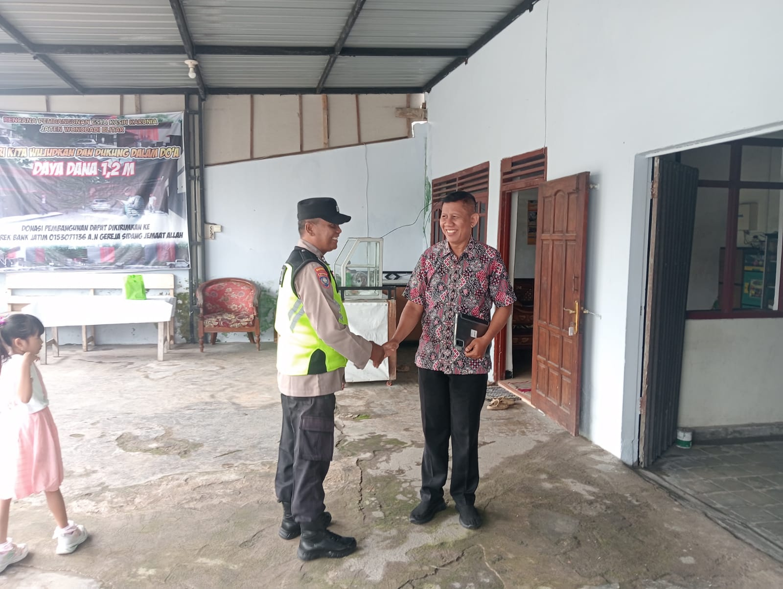 Hadir dalam kegiatan tersebut antara lain Ps. Kanit Binmas Polsek Wonodadi, Bhabinkamtibmas Desa Jaten Brigadir Adi, serta jemaat Gereja Kasih Karunia Desa Jaten Kecamatan Wonodadi. Dalam kesempatan tersebut, petugas melaksanakan sambang dan dialog secara langsung dengan jemaat gereja.